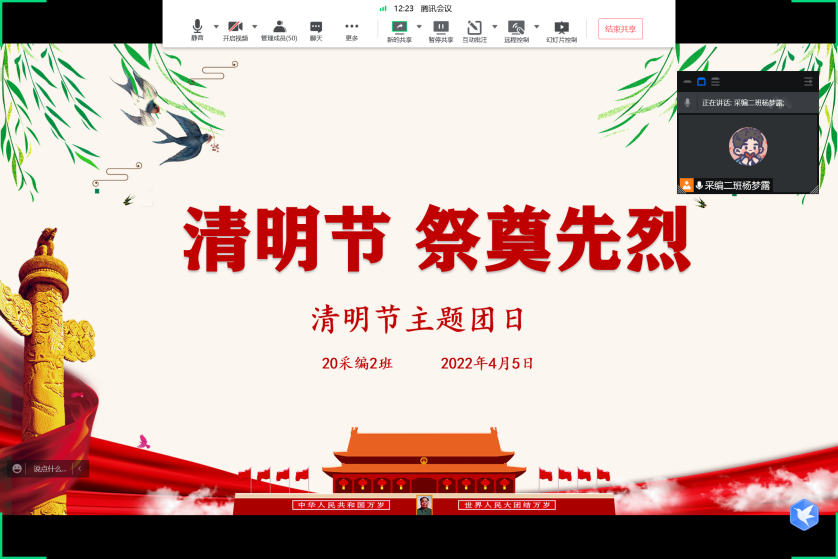 2022年4月4日晚上,21级采编二班全体同学在腾讯会议线上开展了主题为“清明·缅怀”的活动。