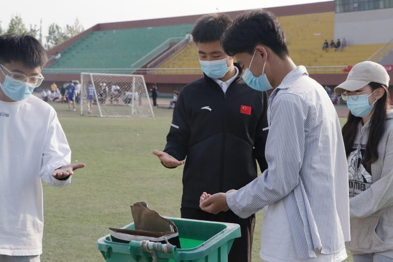 在分工完毕后,我系师生身体力行,认真清理运动场和周边区域的垃圾,绿茵草地里的碎纸屑、角落里隐藏的包装袋……他们都没有放过,大家相互配合,有条不紊地清扫着每一个角落,在经过半个多小时的清理后,运动场上甚是干净整洁,展现着四月的生机与青春的活力。