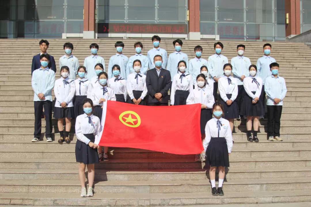 新闻传播系团总支书记张思玺对新团员的加入表示热烈祝贺并寄予深切厚望。他在讲话中叮嘱各位团员要不负时代重托,传承五四精神,深入学习贯彻习总书记在中国人民大学考察时的重要讲话精神,在青春的赛道上奋力奔跑,努力投身于学习和劳动中。他强调,在团组织的带领下团员们应坚定不移的跟党走,筑牢信念之基,补足精神之钙,以建团百年为契机不懈奋斗,做新时代的红色先锋队。仪式结束后,大家与团旗合影留念。
