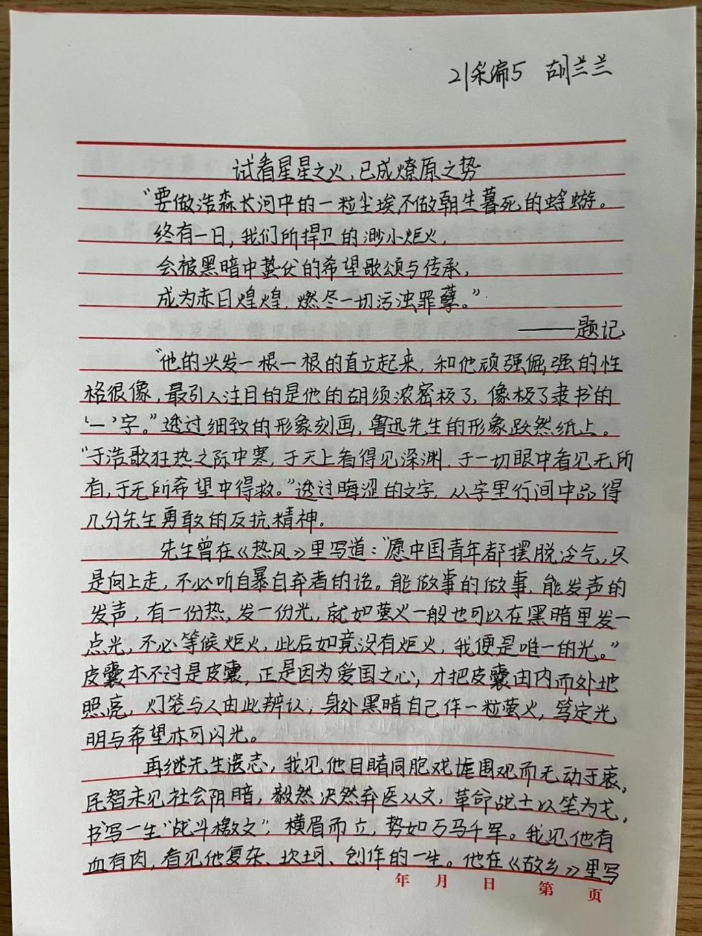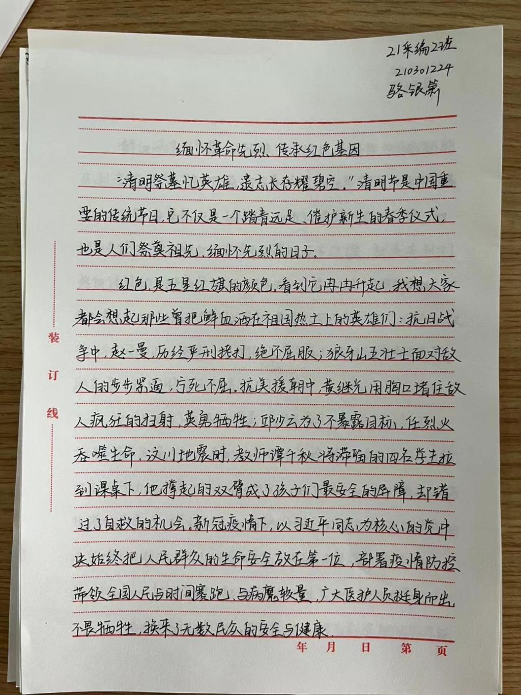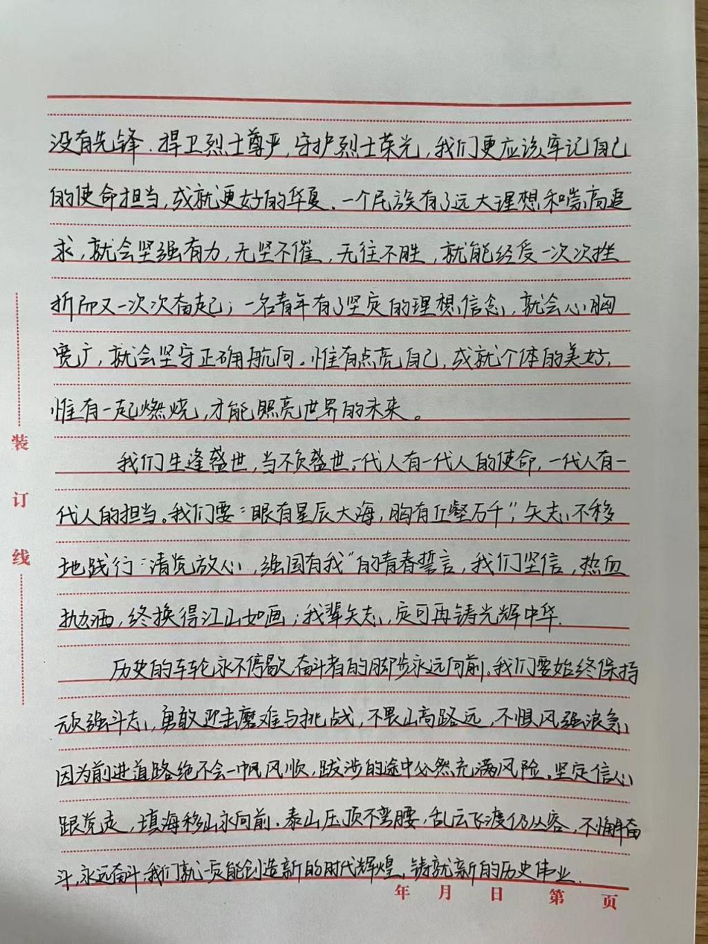 “百年风雨创盛世,千载征程家国安”,同学们积极参与此次活动,在描述一件件革命故事,一位位英雄人物的过程中,追忆烈士的不朽功绩,坚定了自身革命信念,字字句句写出了自己对祖国的深沉情感。