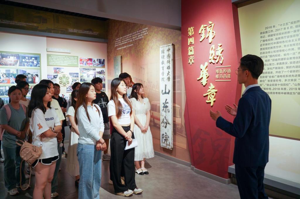 跟随着讲解员的脚步,学员们目不转睛,认真聆听,从燕子山到章丘、文东,一步一个脚印,我院正在不断的发展与完善,同时讲解员也为大家讲解了我院的专业建设和教学管理特色,一张张照片,一个个物件,一幅幅画卷,让同学们深切地了解了我院波澜壮阔的发展历史。同学们在参观过程中,坚定了自身理想信念,激发了爱党爱国热情,并决心将这份热情融入到日常学习生活中,牢记使命,自强不息,奋力书写新的时代篇章。