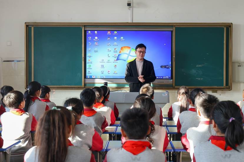 活动中,徐诺和马少楠走进班级,为学生们讲解普通话相关知识。徐诺用绕口令《八百标兵奔北坡》带领同学们领悟发音的奥秘,从日常生活入手学会如何运用语言文字,同学们积极举手回答问题,课堂气氛轻松欢快。马少楠则以朗诵《夏日绝句》《出塞》为切入点,用通俗的语言逐字逐句地向孩子们讲授其表达的含义及朗诵时所需要的感情,寓教于乐、寓学于趣,提升了同学们对普通话的兴趣。