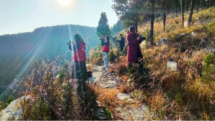 刘传琳等师生还攀登上石子口村的西山、北山,拍红叶、拍村貌、探访古迹,为深度创作搜集素材。