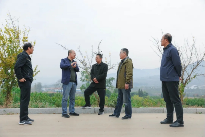 在探访过程中,采风团还看到了正在兴建的凤驿小镇“智慧果园”。苹果是当地特产,过去品种老化,在镇党委和乡村振兴服务队的帮助下,打破了传统的种植模式,引进了新品种、采用新技术、推行新模式,打造了质量高、效益好、示范带动能力强的标准化园区。