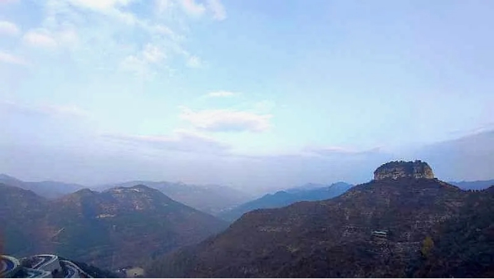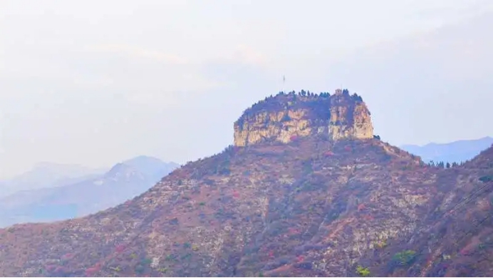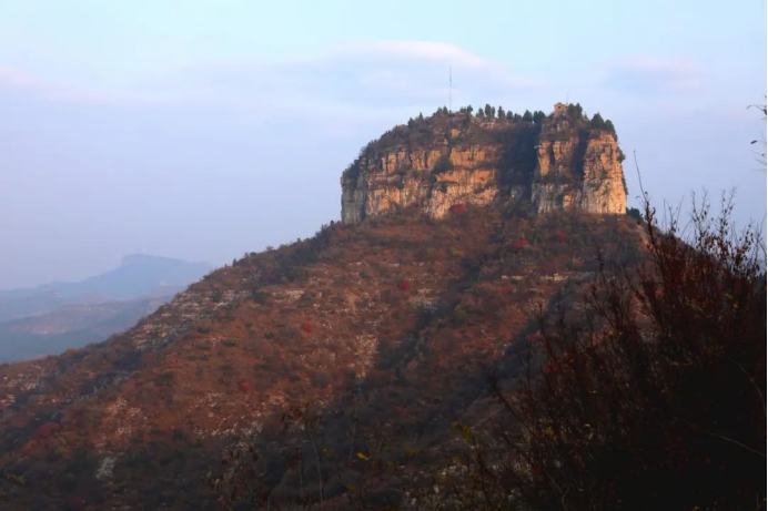 岱崮地貌是山顶带帽,那么海拔最高的是那个?10月31日下午,飞“阅”崮乡采风团来到了位于潍坊市青州仰天山的摩云崮,这座海拔865米的崮便是最高者。离山还有几公里,采风团队员们便看到摩云崮在云雾里若隐若现,虚无缥缈,如仙如画。