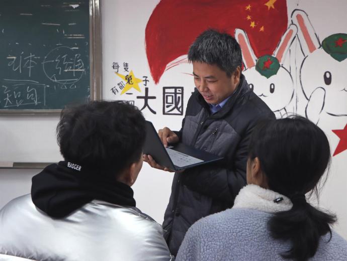 新闻传播系副主任张正学与学生交流作业完成情况