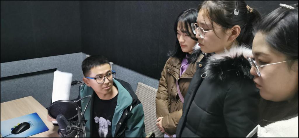山东教育电视台战略规划委员会主任侯纲、山东教育卫视传媒中心综合管理部主任刘小峰、相关负责人与新闻传播系主任刘传琳,专业教师李延杰、张阳阳、张丹丹等师生进行了座谈,举行了教学实践基地授牌仪式。曹飞、孙晓波、毕秀玲、李玉林是教育卫视传媒中心节目负责人,同时担任学徒班师傅,他们分别带领自己的学徒们体验岗位,增强岗位意识。老师们根据学生的学习特点、就业倾向以及兴趣爱好设计了本次参观学习的内容和深度。从岗位到栏目,从设备到技能,将具体的工作流程细致分解,便于学生深入的感受真实的工作情景。