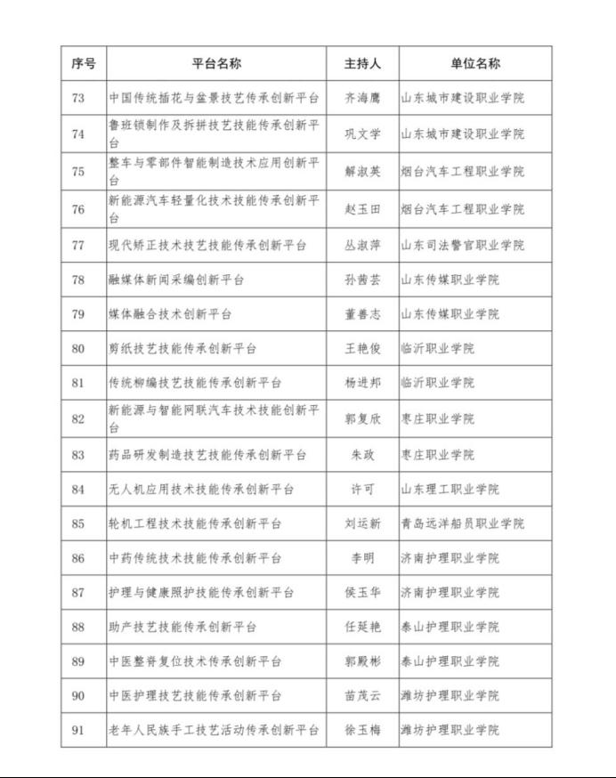 山东省职业教育技艺技能传承创新平台,是山东省教育厅为贯彻落实《教育部 财政部关于实施职业院校教师素质提高计划(2017-2020)的意见》(教师【2016】10号)等文件精神,进一步发挥职业院校名师和骨教师示范作用,提升“双师型”教师队伍整体水平的一项建设计划。